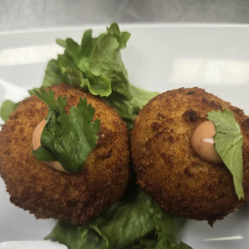 3 Mashed yuca breaded and stuffed with seasoned ground beef or mozzarella cheese.